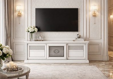 Тумба Кантри под телевизор с выдвижными ящиками Блан шене