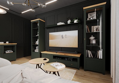 Тумба Эмили под телевизор Олива темная, Таксония