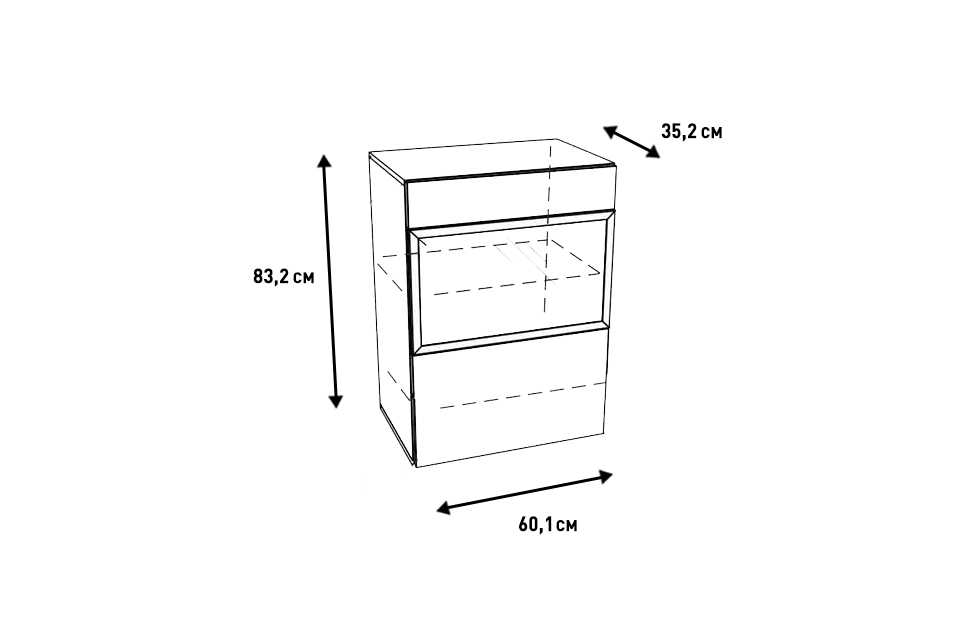 – описание: стиль современный, минимализм, назначение для гостиной, размер 83.2x60.1x35.2 см, цвет швейцарский вяз, белый.