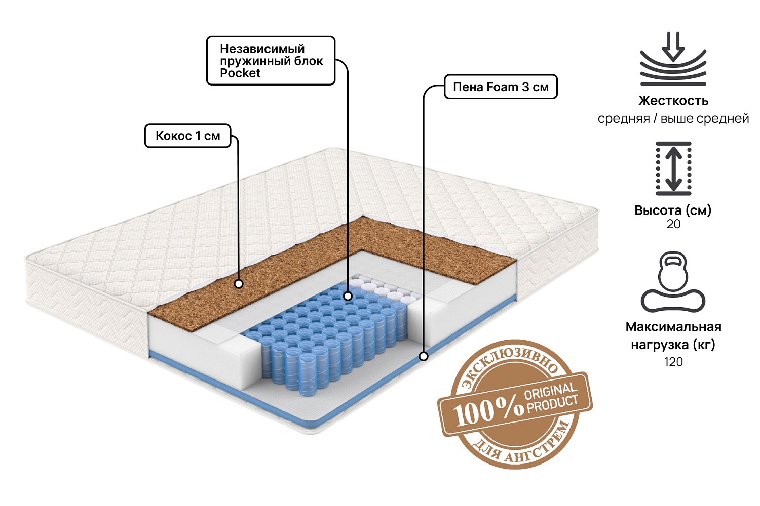 • Матрас с блоком независимых пружин Pocket;