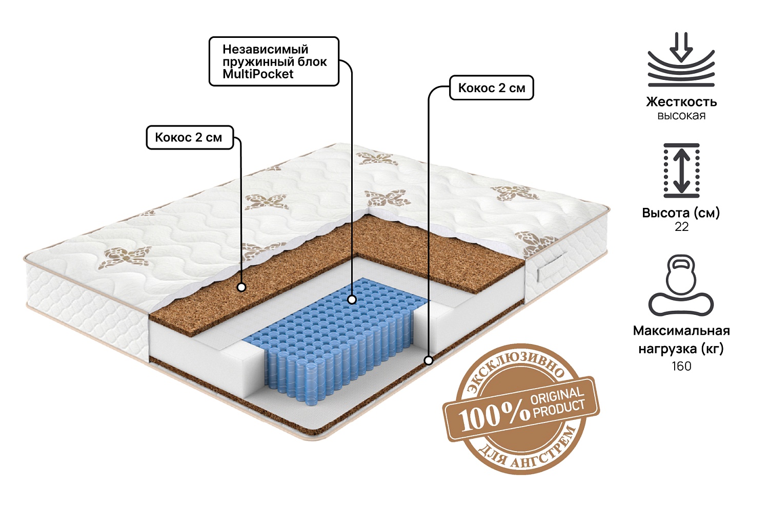 Блок независимых пружин MultiPocket (1000), Кокос