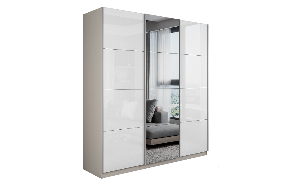 Цена на Шкаф-купе Lux 210х230х57 кашемир Белый глянец/Зеркало/Белый глянец от производителя , приобретите в кредит!